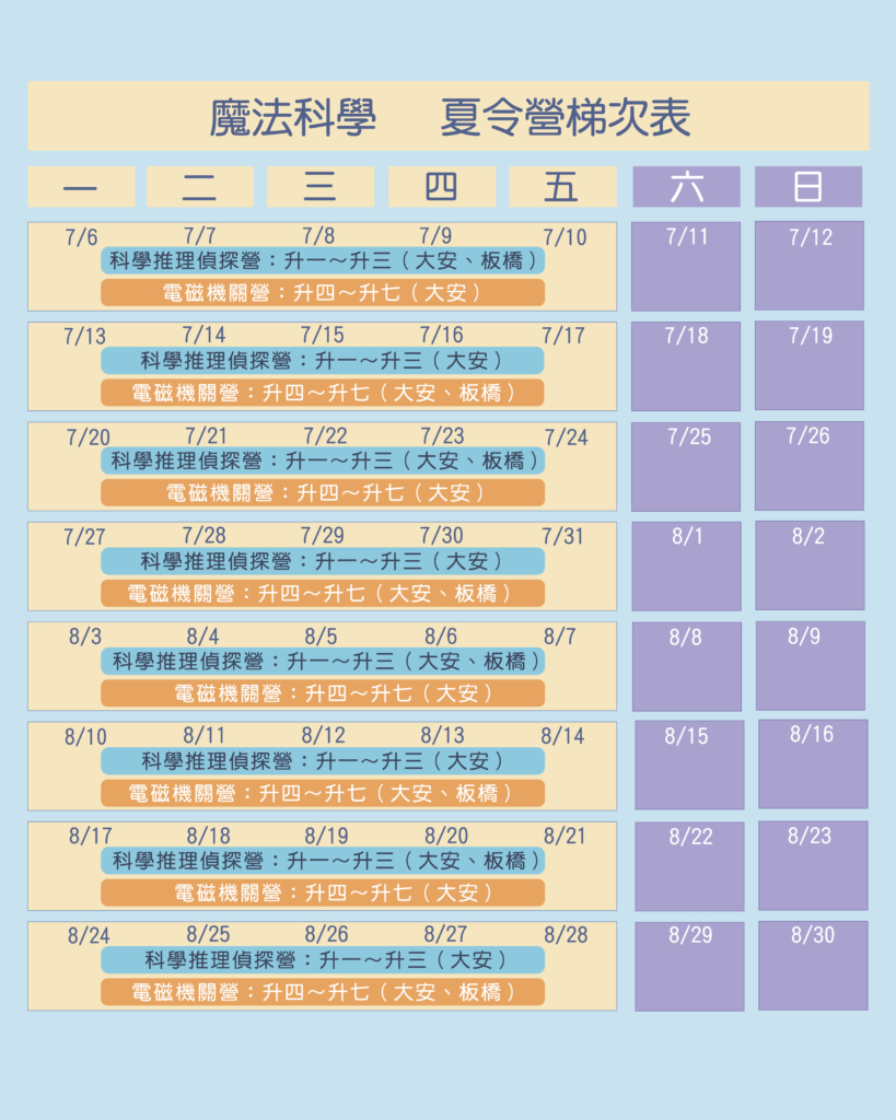 2026夏令營梯次表(梯次已定)